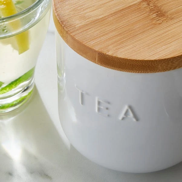 It’s time to get your daily kitchen bits and bobs organised, but lets start off with your morning cup of tea. Why not store your favourite tea in our gorgeous tea canister? Made from high quality stoneware which is easy to hand wash, this canister has been embossed with the text ‘Tea’ and is finished with a secure bamboo lid to keep your tea fresh for longer. This canister is available in another colour, so you have options to suit your kitchen accessories.