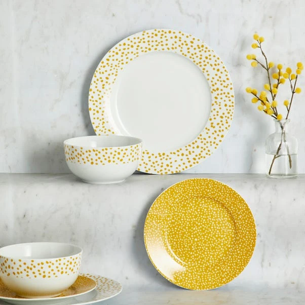 Dunelm Dotty Ochre 12 Piece Dinner Set