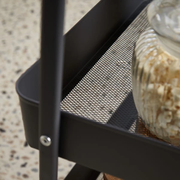 Store your daily cooking essentials and dried goods neatly organised with this convenient and compact metal trolley, featuring three large capacity tiers, each which holds 10kg in weight. This trolley can easily be rolled with the swivel wheels and handles. This is a staple storage item for any kitchen or pantry!