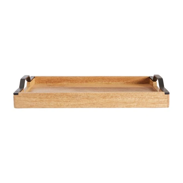 Featuring a stylish natural finish, this handmade wooden tray is perfect for serving food, or using decoratively. This tray is durable and handy to move thanks to its convenient handles. This tray an be easily wiped clean and other matching accessories are also available.