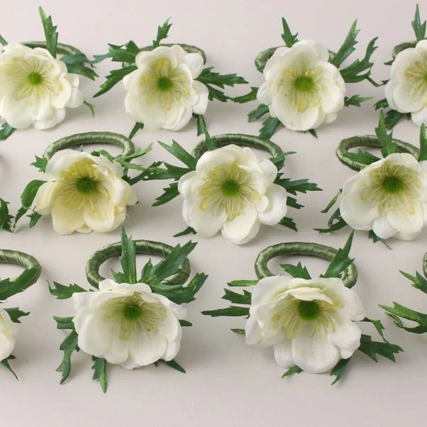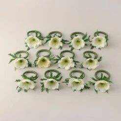 This pack of 12, beautiful floral napkin rings with a realistic finish have a classic cream colourway that will complement an array of home decors and dining accessories. They are perfect for the home and events, such as weddings.
