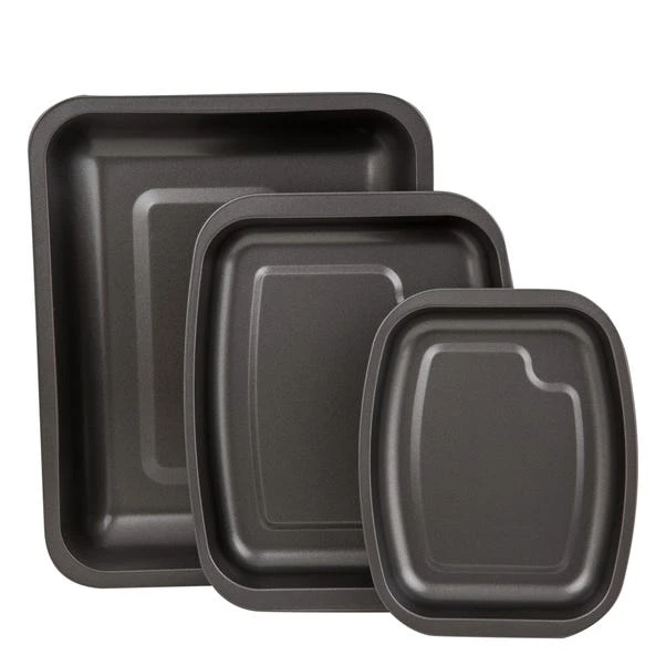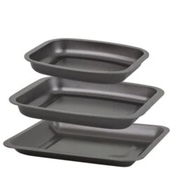 This set of three roasters is perfect for all your oven cooking. Set includes 39cm, 32cm and 26cm roasting tins, all with double coating and non stick lining.