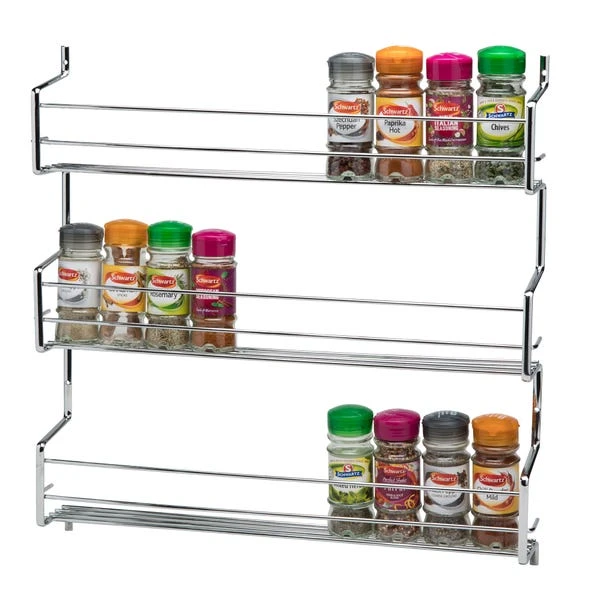 Save valuable cupboard space with this three tier spice rack! Supplied with all the required fixings, the rack can be attached to a wall or inside a cupboard allowing you to easily access and see all your favourite herbs and spices.