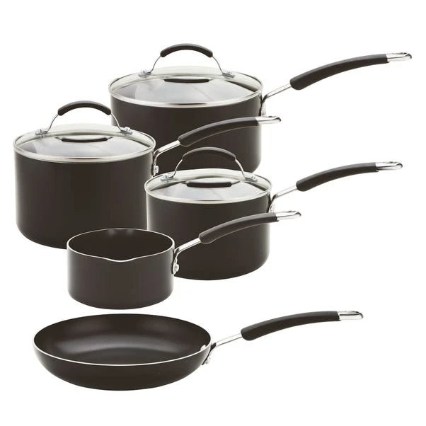 The 5 piece pan set has a triple layer, non stick interior providing long lasting low fat cooking for healthier meals and easy clean convenience, to spend more time enjoying your creations and less time cleaning up.